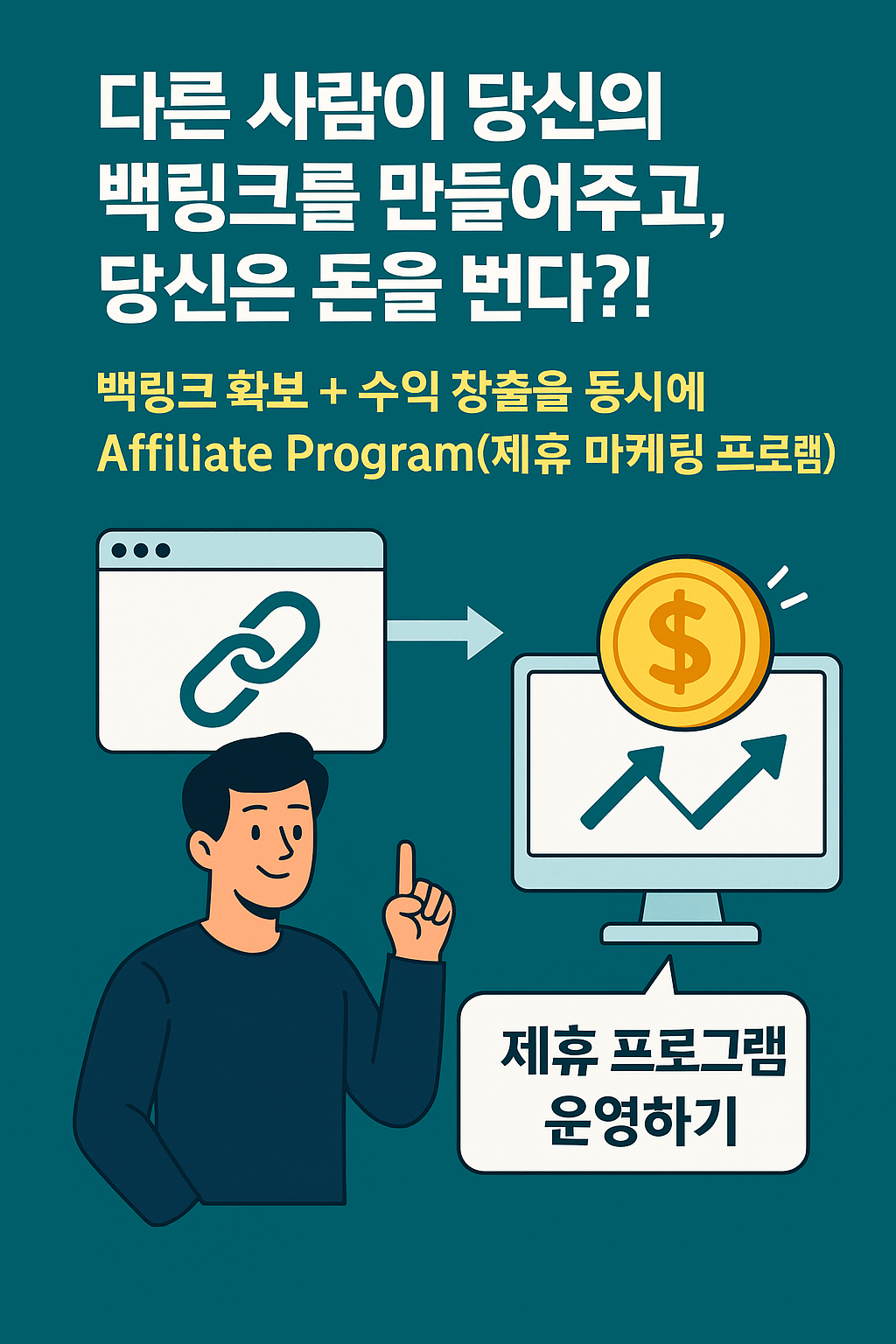 다른 사람이 당신의 백링크를 만들어주고, 내가 돈을 번다?!백링크 확보 + 수익 창출을 동시에이게 가능할까요?정답은 Affiliate Program(제휴 마케팅 프로그램) 입니다.✅ 무작정 백링크를 요청하는 시대는 끝났다요즘은 “제 사이트에 링크 좀 걸어주세요”라는 요청만으로는의미 있는 백링크를 얻기 어렵습니다.이제는 상호 이득 구조를 만들고, 자발적으로 링크를 생성하게 유도하는 것이 핵심 전략입니다.💡 최고의 전략: 내 제휴 프로그램 운영하기아마존처럼, 당신도 자체 제휴 마케팅 프로그램을 만들 수 있습니다.그럼 사람들은 링크(백링크)를 걸고 제품을 홍보한 후 판매 발생 시 커미션을 얻는 구조가 됩니다.이 방식의 핵심 장점은 다음과 같습니다:항목 효과✅ 링크를 누군가가 자발적으로 걸어줌자연스럽고 강력한..